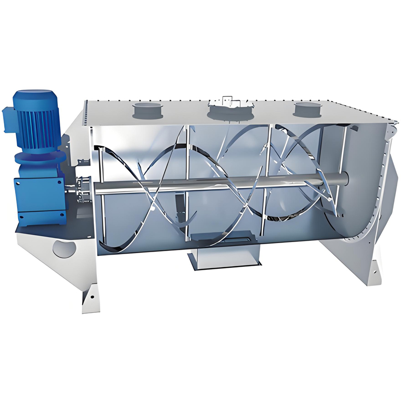 A Horizontal Ribbon Mixer is a high-efficiency batch mixing equipment characterized by its horizontally oriented mixing container ("horizontal") and internal rotating agitator blades. Its core components include a U-shaped or O-shaped horizontal trough and one or more rotating shafts equipped with specifically designed blades (most typically spiral ribbon blades).