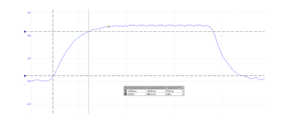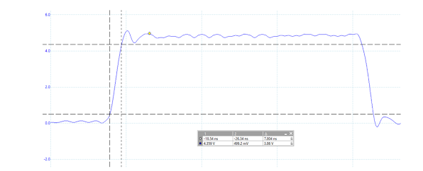 图4显示了相同的信号,但由RC滤波器滤波。我选择了100Ω电阻器和100pF电容器,此外,我们还测量了信号驱动器的38Ω输出电阻和〜10pF IC负载电容,这些都必须考虑在内。RC滤波器计算器显示的截止频率为: