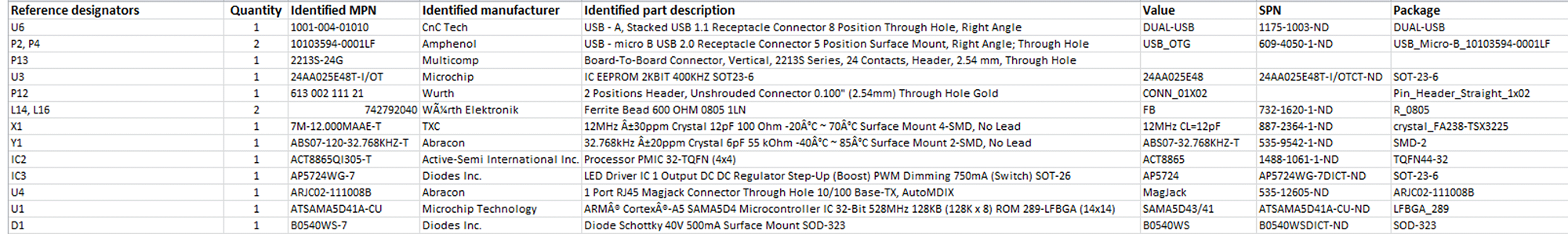 重要的是,包含组件参考标识符的每一行也包含所需的零件信息。
