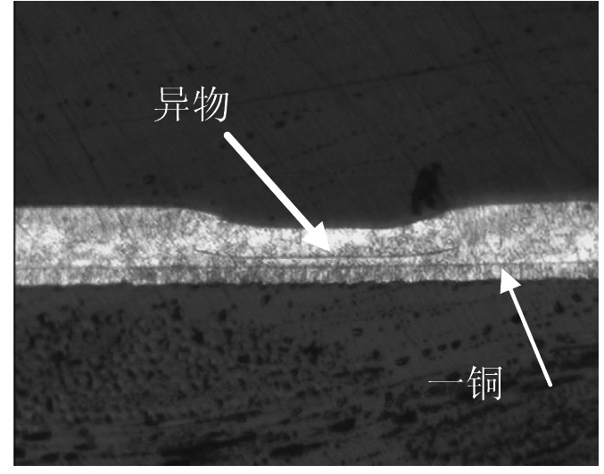 对凹坑处进行金相剖切,如图2所示,可看出凹坑处二铜电镀不全,有的甚至未镀上二铜。