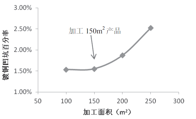 图6 加工面积与镀铜凹坑百分率趋势图