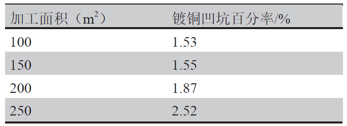 盛世集团 表1 显影液加工面积对镀铜凹坑的影响