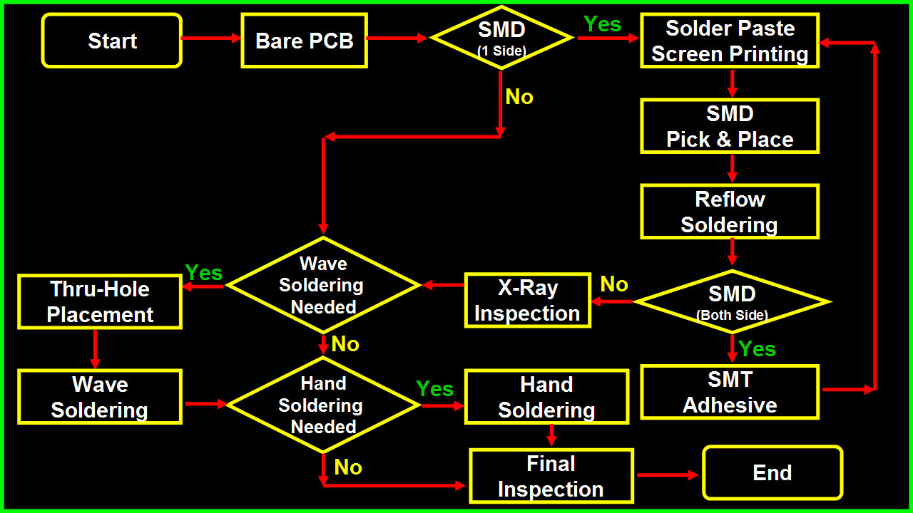 对于工厂的批量生产,使用SMT机进行 SMD焊接。主要的此类机器是回流炉